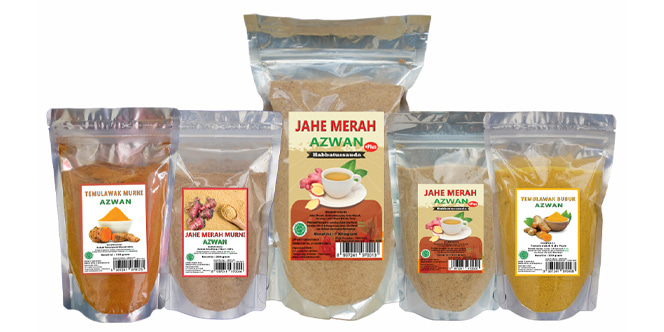 Herbal seperti Produk Jahe Azwan. Jahe Merah Bubuk Azwan diperkaya dengan bahan